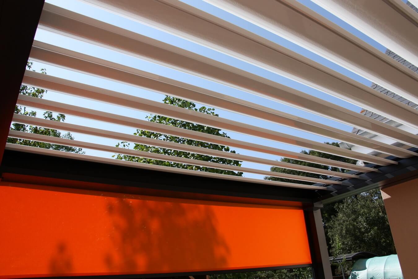 Les stores intégrés à la pergolas protègent de la chaleur et de la fraicheur, mais protègent également votre intimité des regards extérieurs.